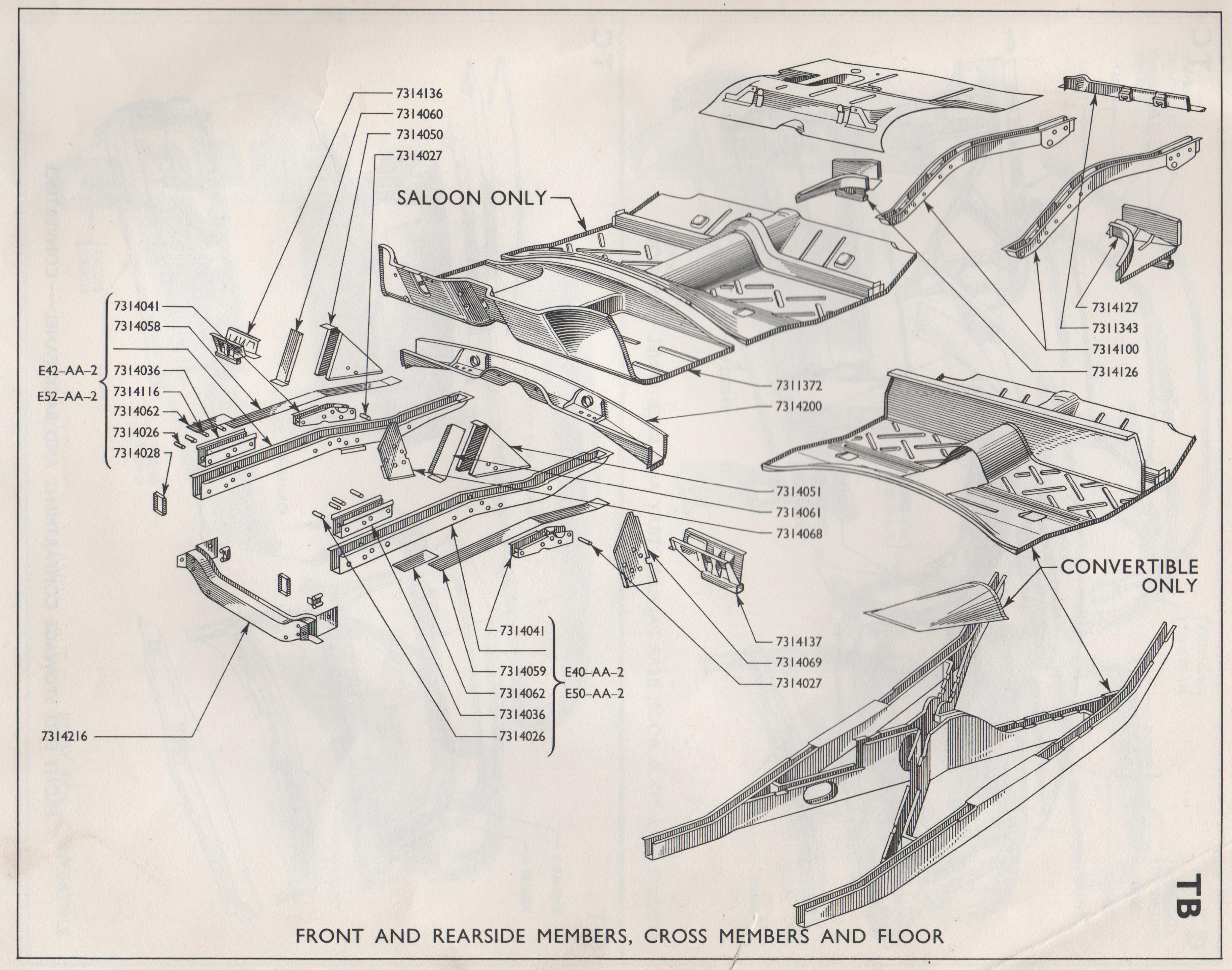 FRONT REAR CROSS MEMBERS CONSUL ZEPHYR ZODIAC 1951 TO 1956 MK1