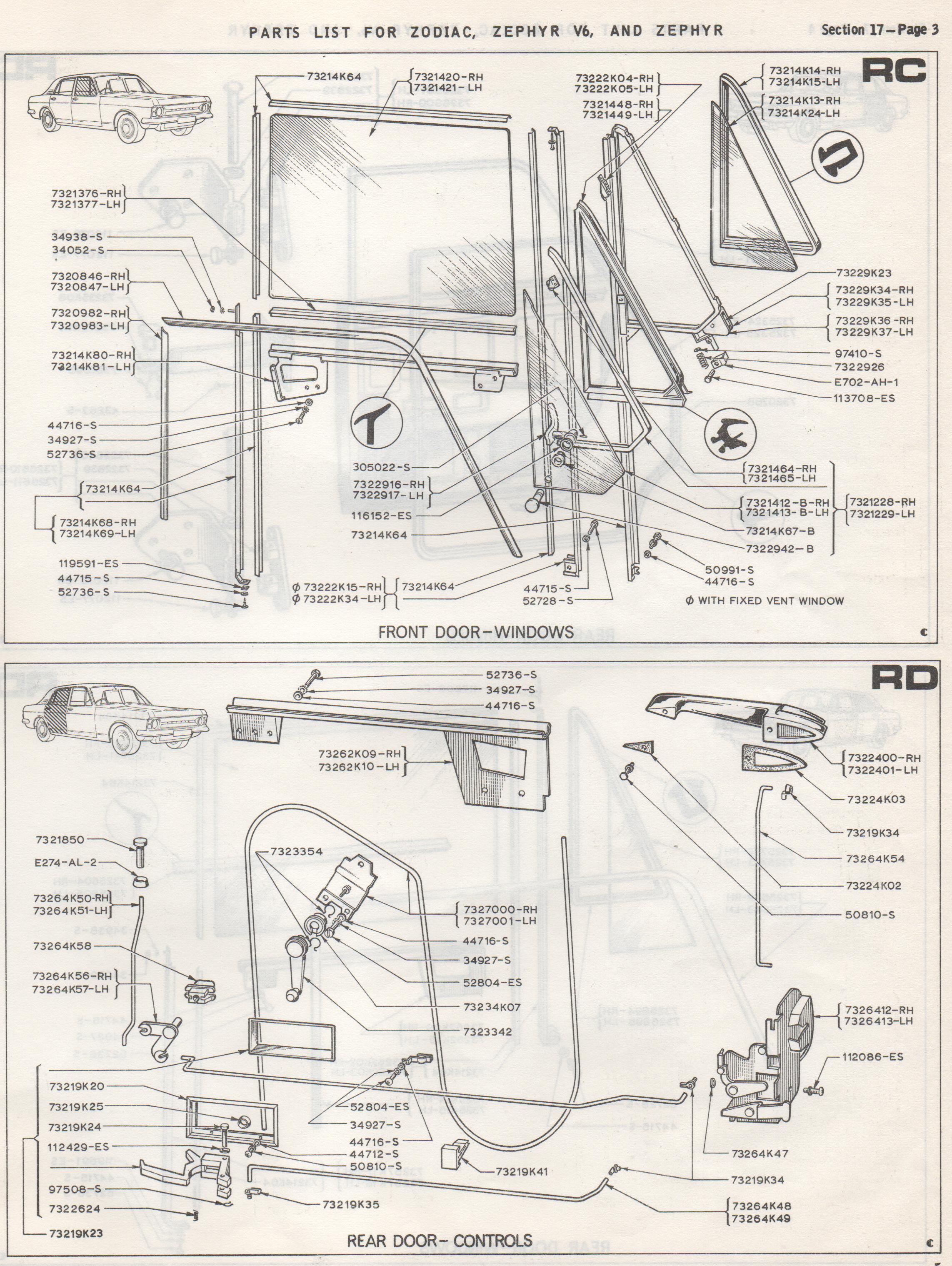 FRONT DOOR WINDOWS AND REAR DOOR CONTROLS ZEPHYR ZODIAC MK4