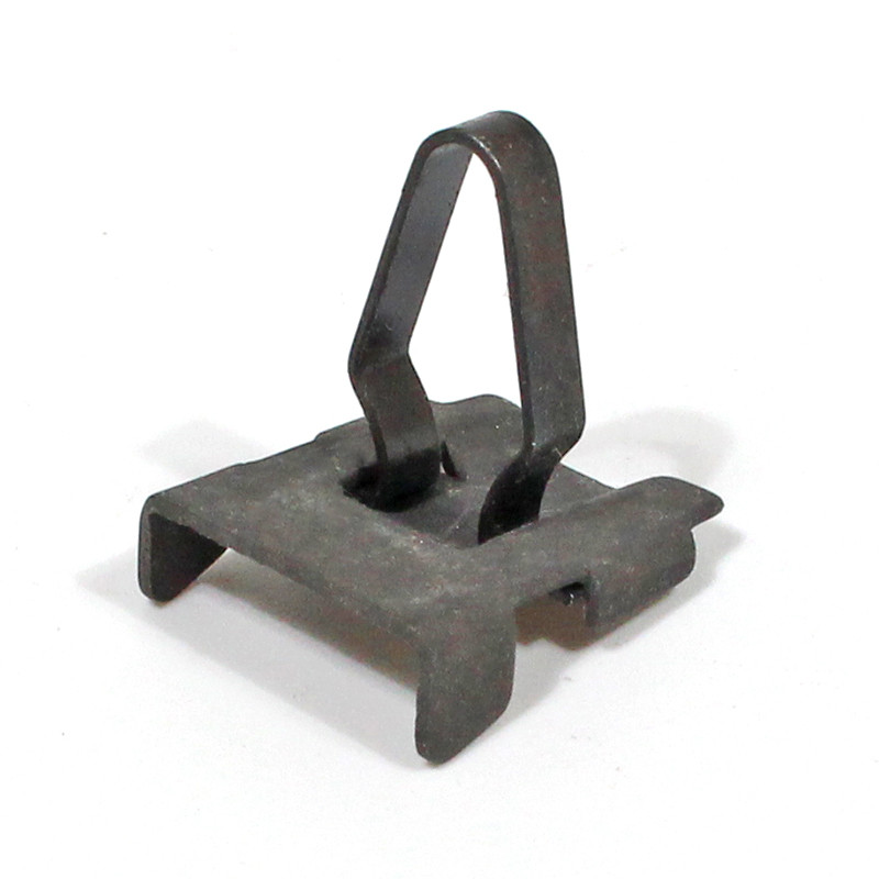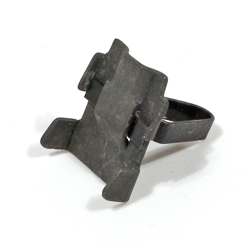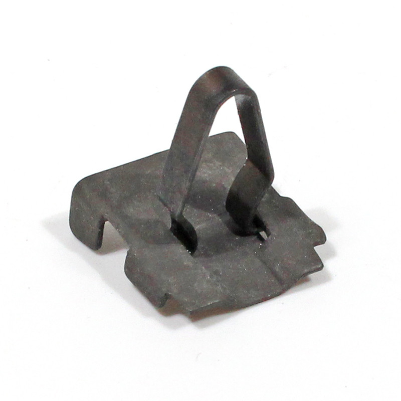 Moulding Clip/Rivet, for fixing body moulding strips to vehicle side, slides into the strip. arrow head push clip requires hole approx 10mm. will suit ford 100E with the 20.65mm side strips, to 1956. also Consul Mk1. sold each. base plate measures 17mm x 15mm, arrow head 15mm tall x 10mm wide.