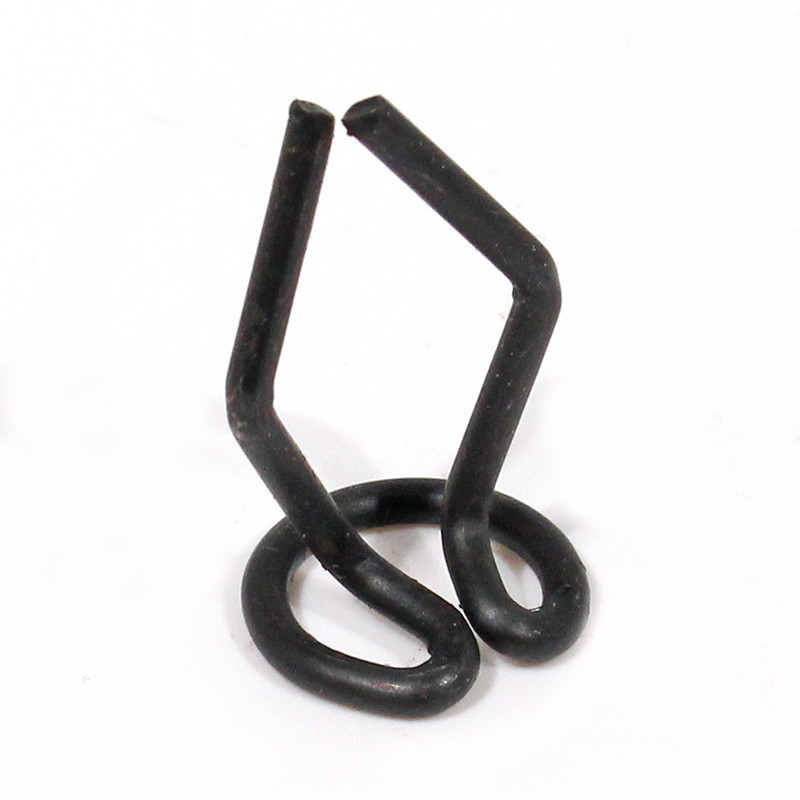 Shaped wire trim clip, used to secure E83W radiator shell mouldings (18 required per vehicle) as well as other applications. 1/2" dia head with 7/8" long prongs.