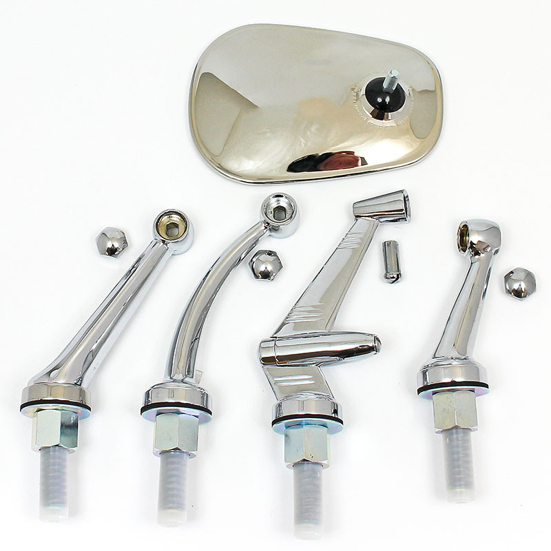 'Oval' mirror head shape, 126mm x 85mm. Stainless steel head supplied with CONVEX glass only. Offered with a choice of four designs of chrome stem - please make your selection below. All four arms mount through a 16mm hole in the panel and protrude 50mm under.