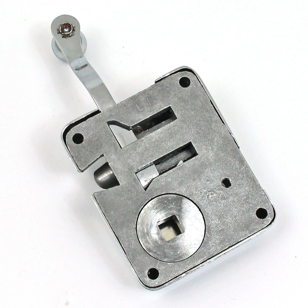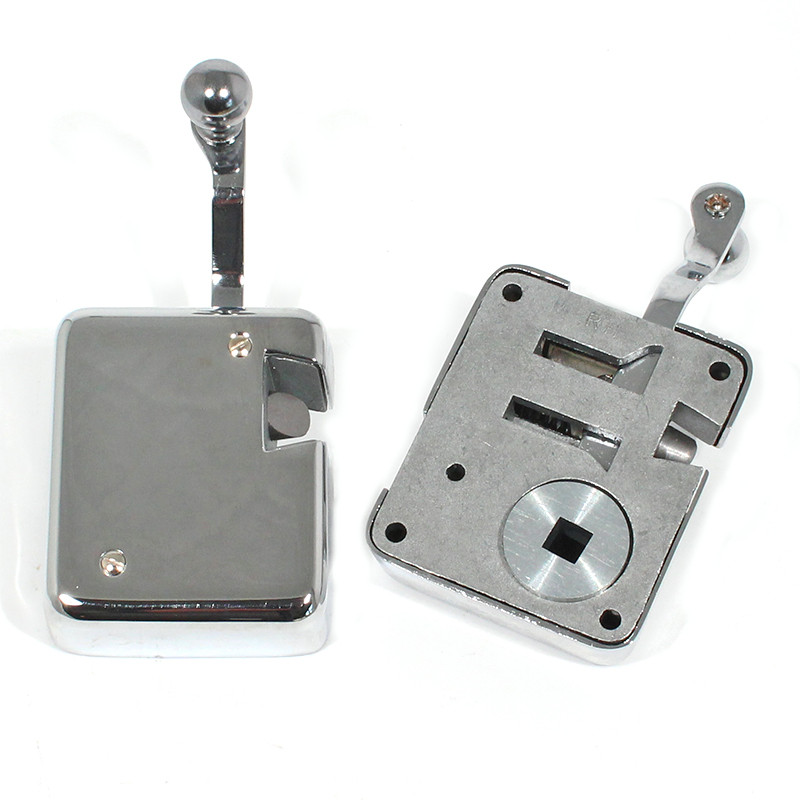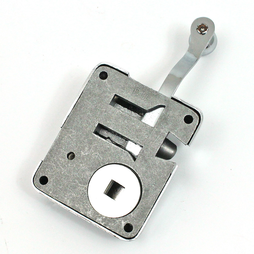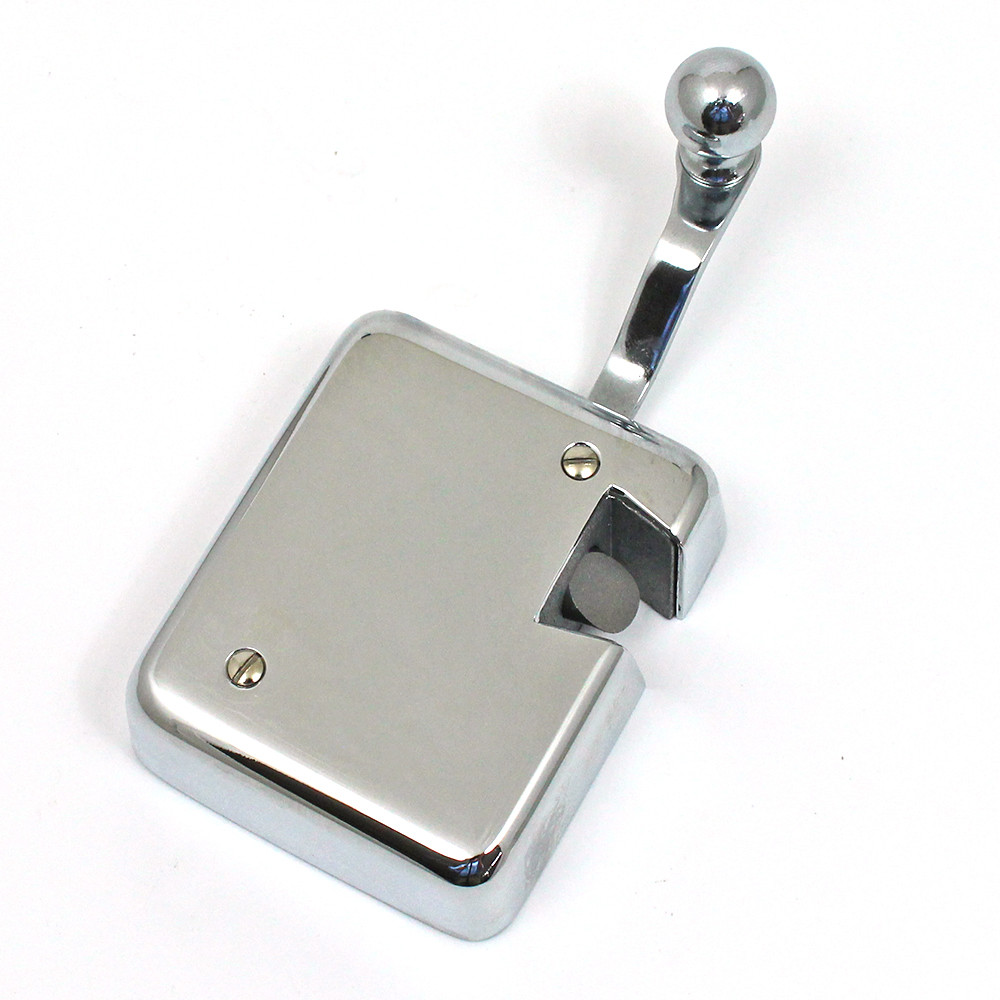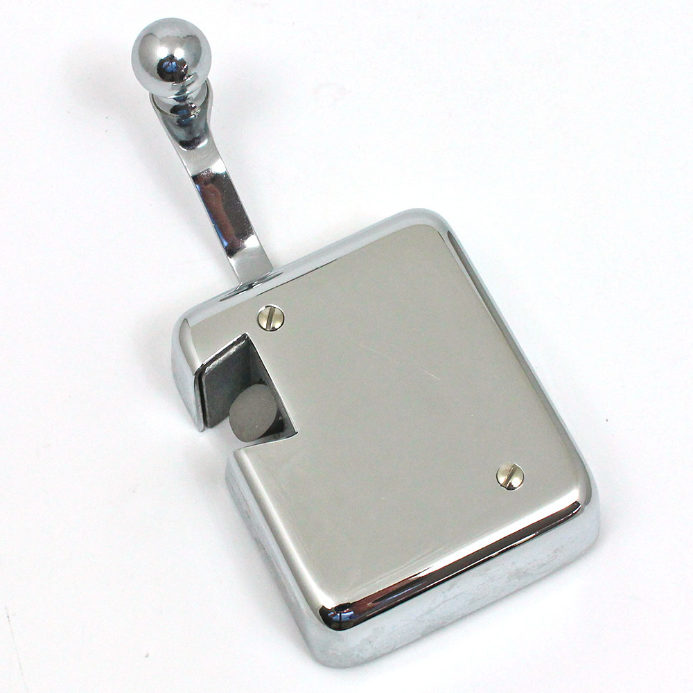 'Silent-travel' lock, as used on MG and other pre-war cars, chrome finish 63mm wide 75mm tall body, chrome cover. Facility for shaft of exterior handle to fit into back. Use striker plate part numbers 602N, 602W, 602F or wedge 602D. Square hole for handle shaft approx 20mm from face edge.