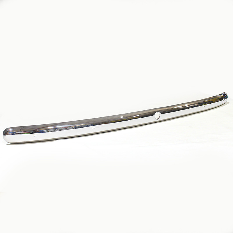 Chrome bumper bar with mounting holes and hole for starting handle.