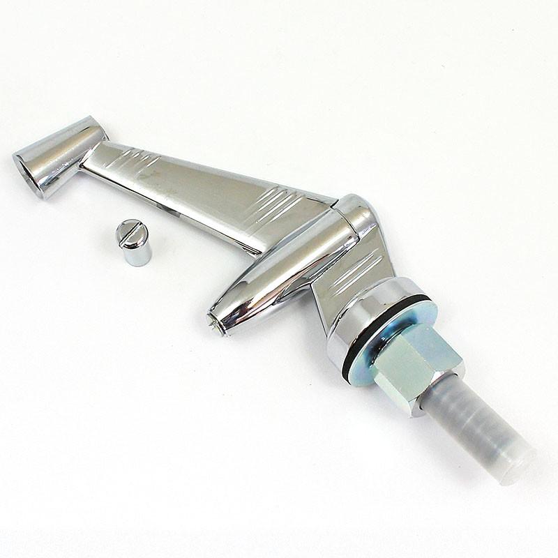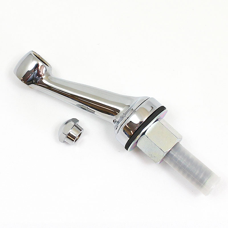 Four styles of chrome mirror arms that mount through a 16mm hole in panel. With swing back spring (protected in plastic sleeve) protuding 50mm under arm, secured with a 3/4" AF nut. Supplied with a special chrome mirror head domed nut. Very popular classic mirror arms.